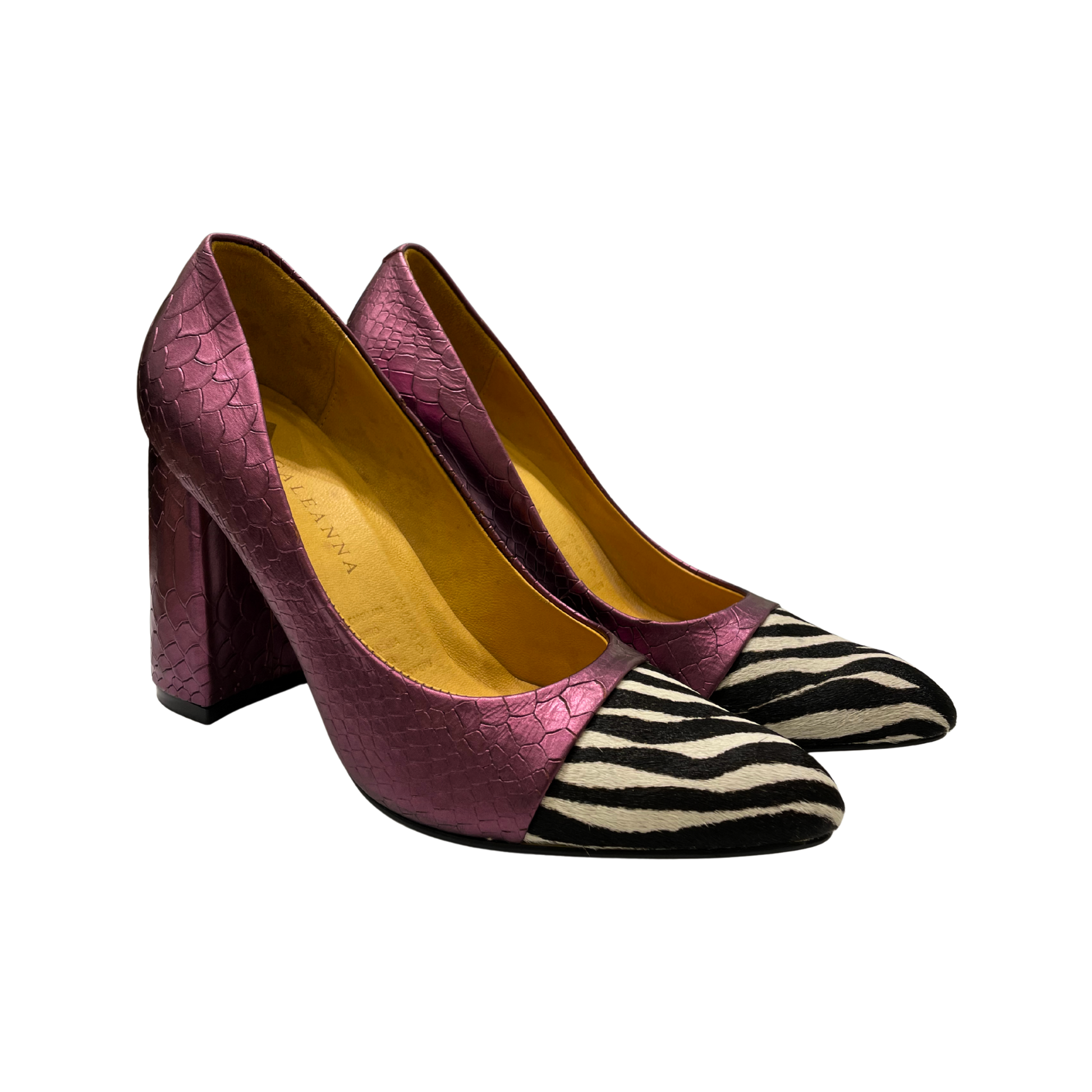 - Punta de cuero con textura de piel de zebra.